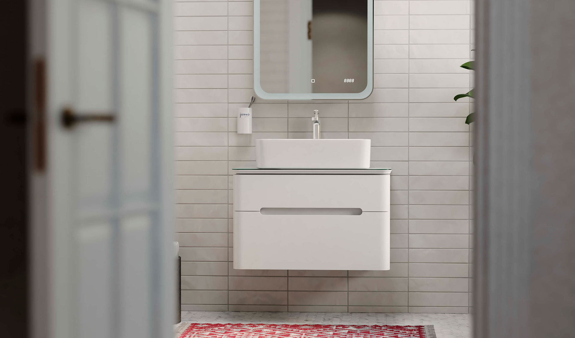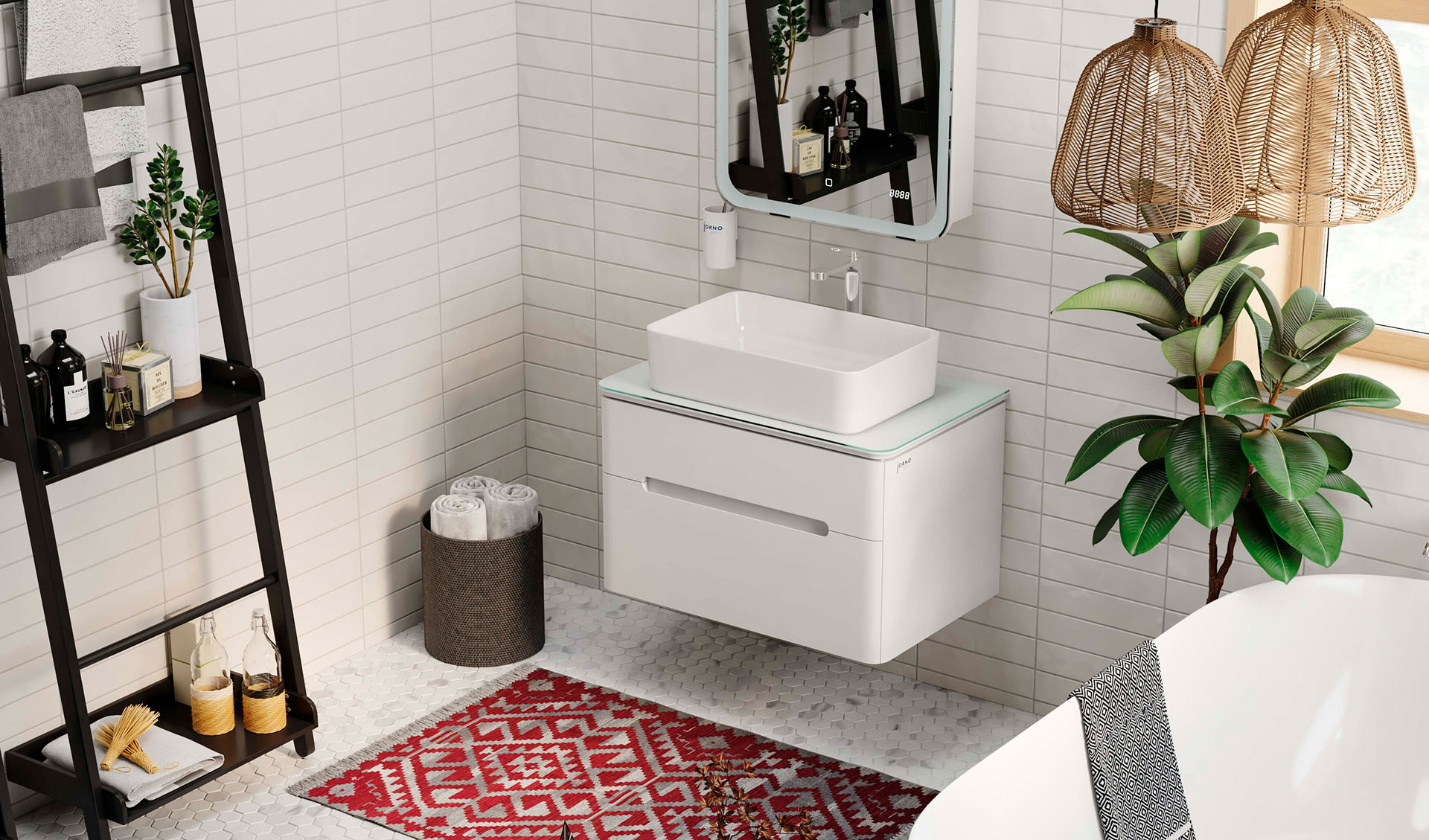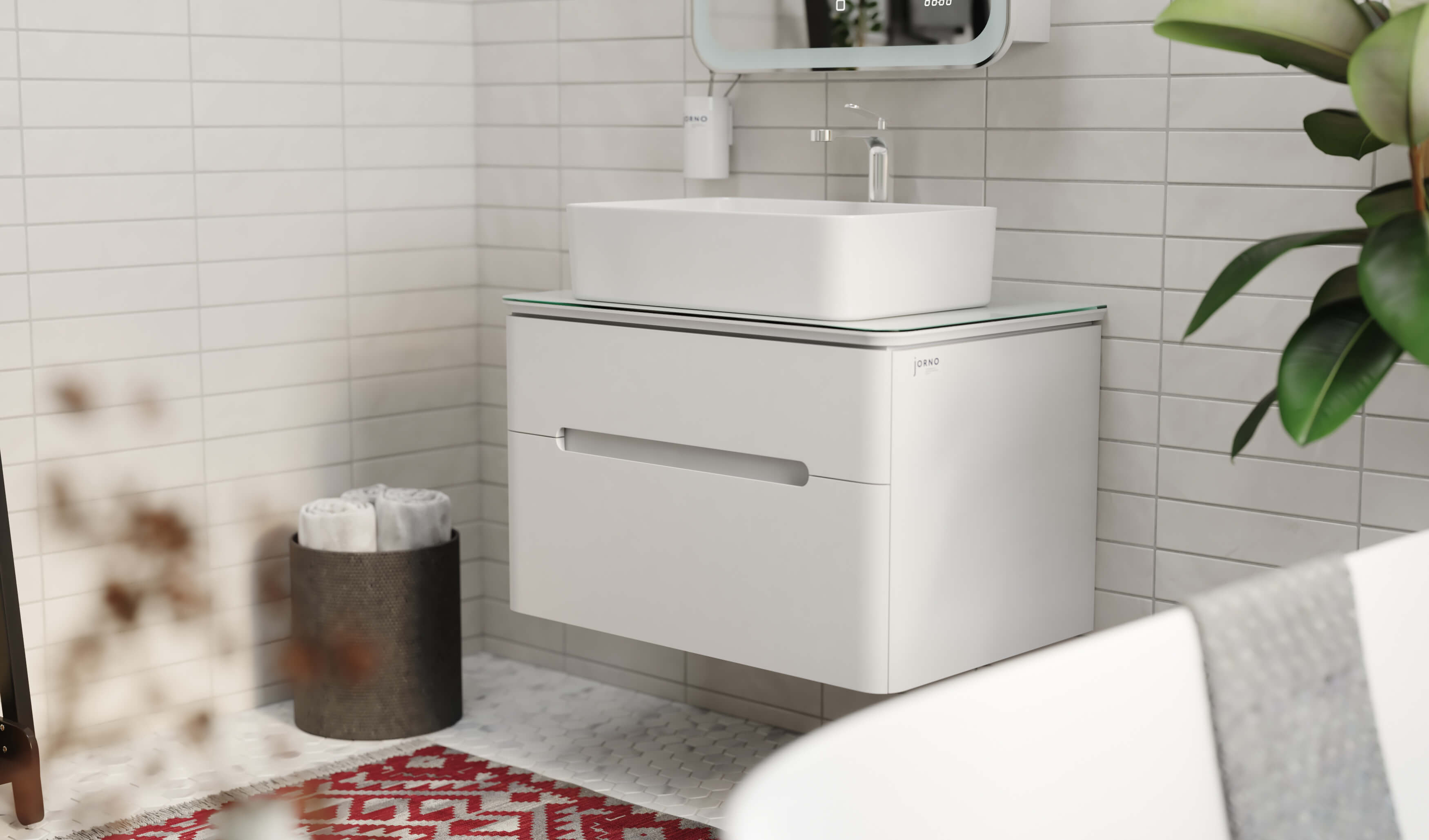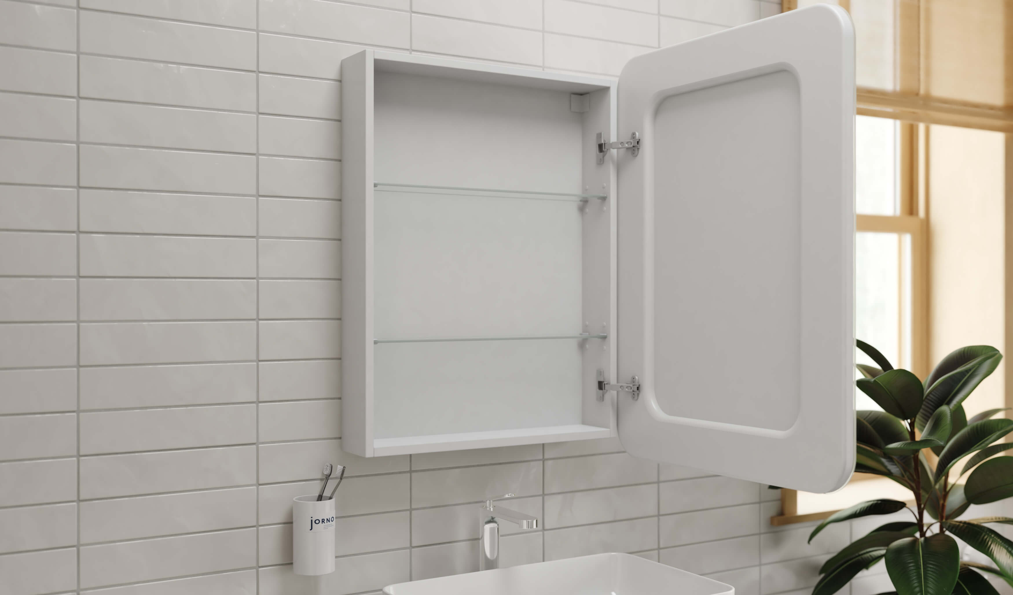 Мягкие линии полукругов на ручках, столешнице, тумбе и зеркале создают позитивный образ, приятный для частого непосредственного контакта.