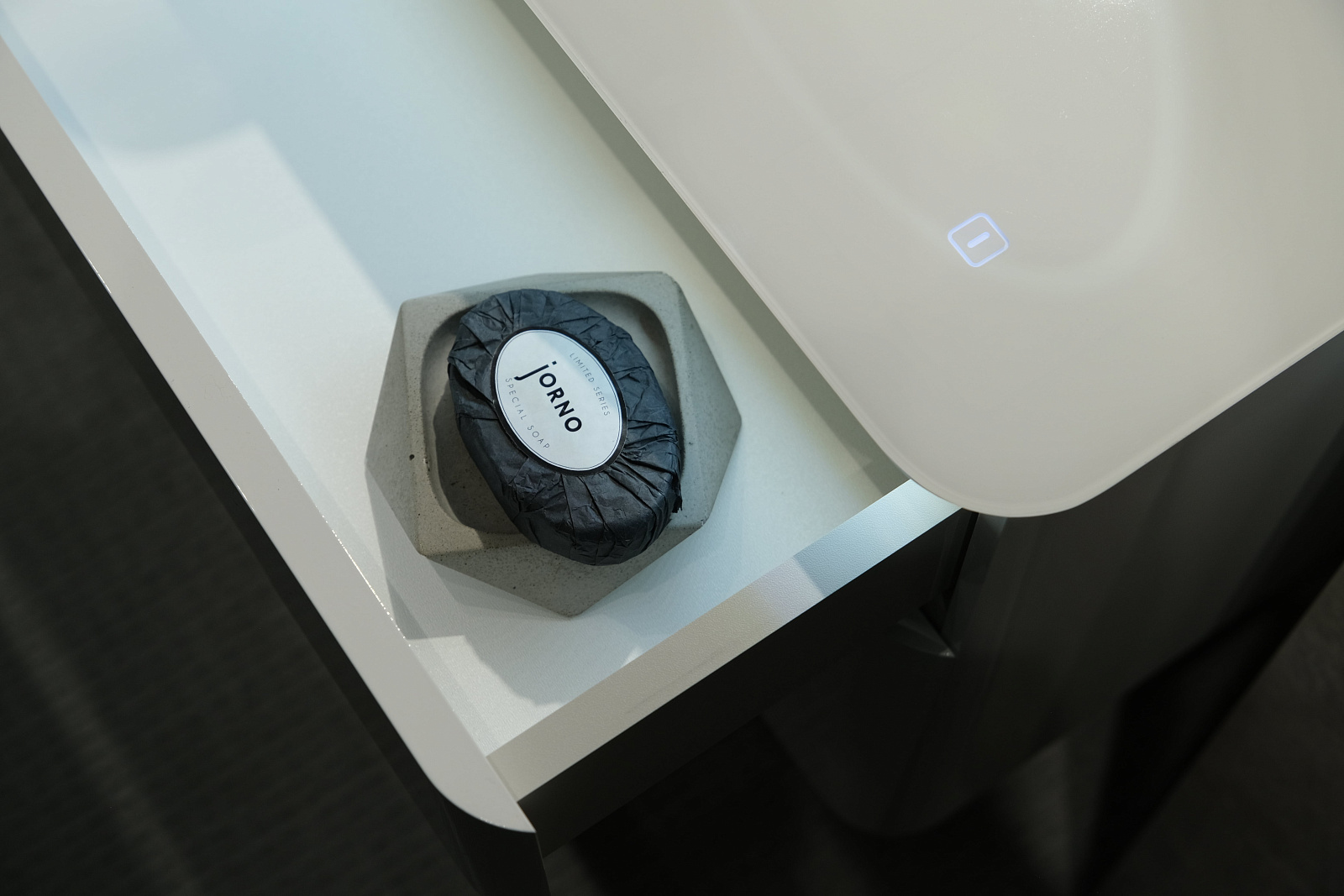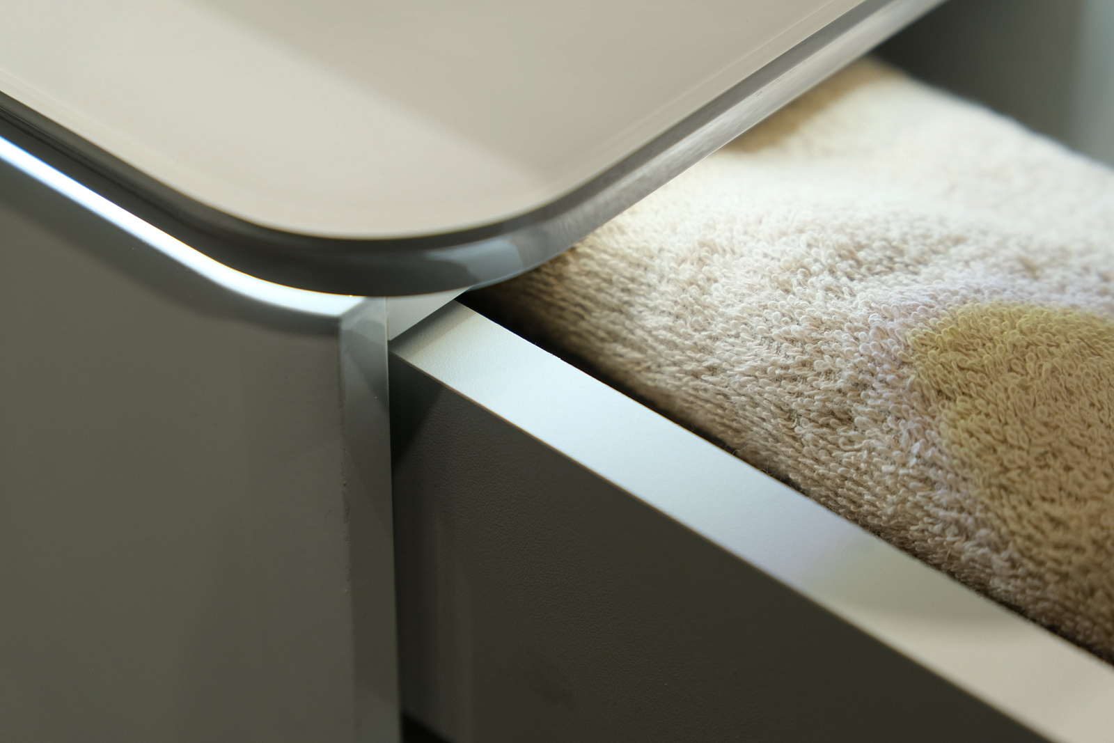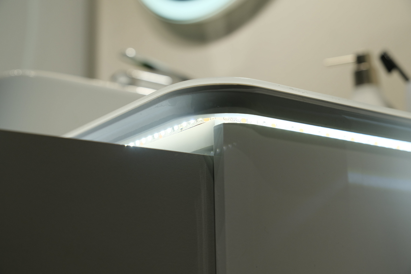 Само название коллекции говорит о том, что одним из основных достоинств данного комплекта является подсветка. Свет столешницы тумбы можно регулировать от деликатного мягкого до более яркого.