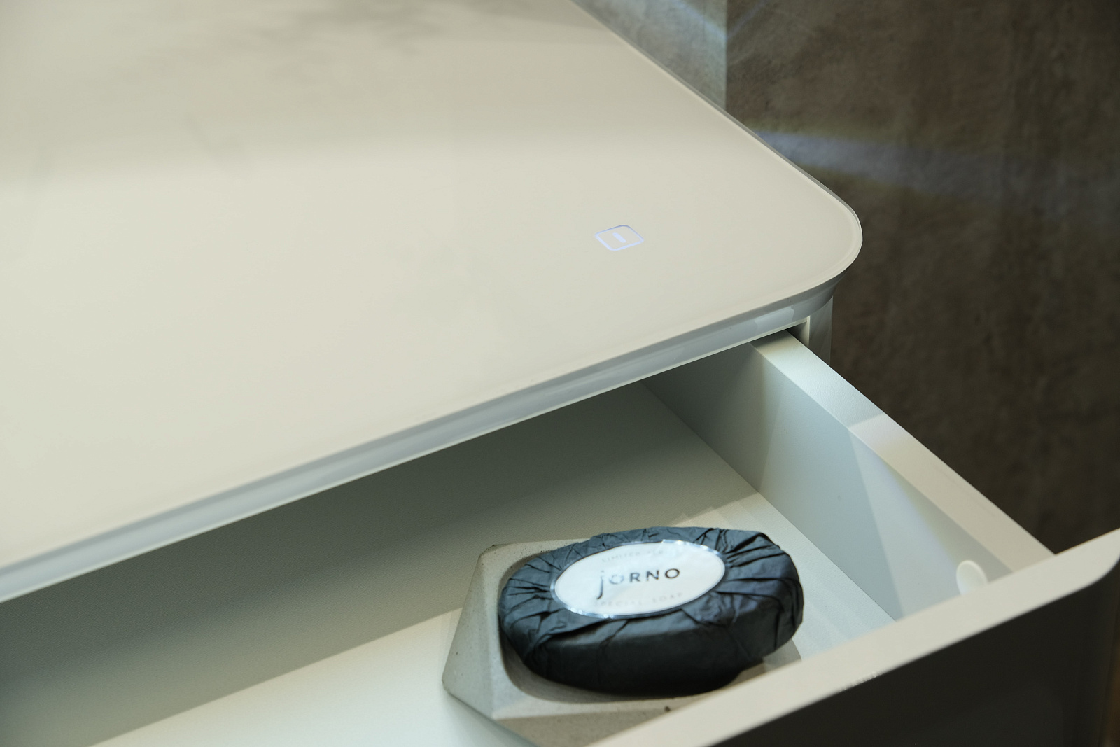 Тумба оснащена подсветкой столешницы и...сенсорным включателем.