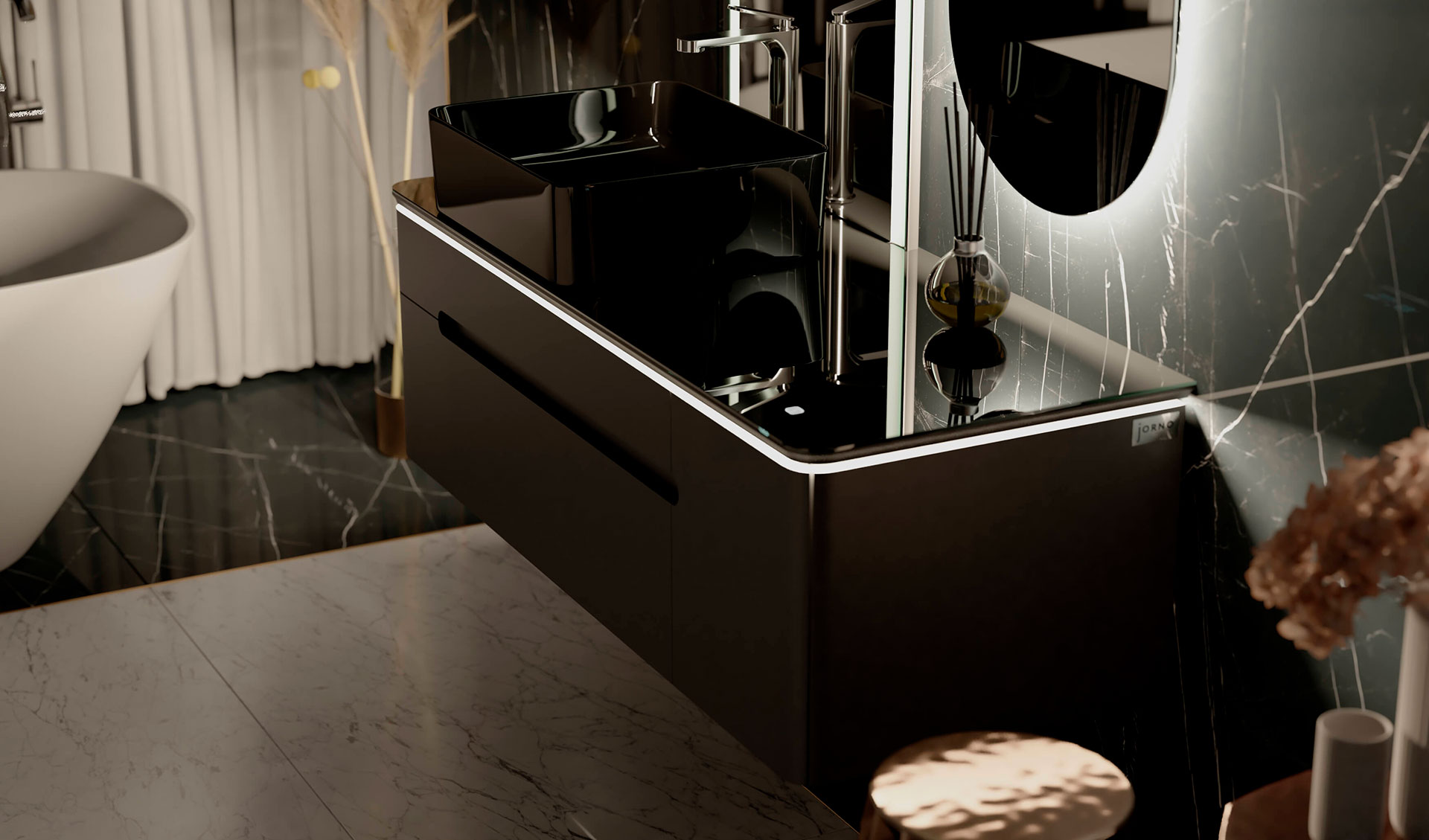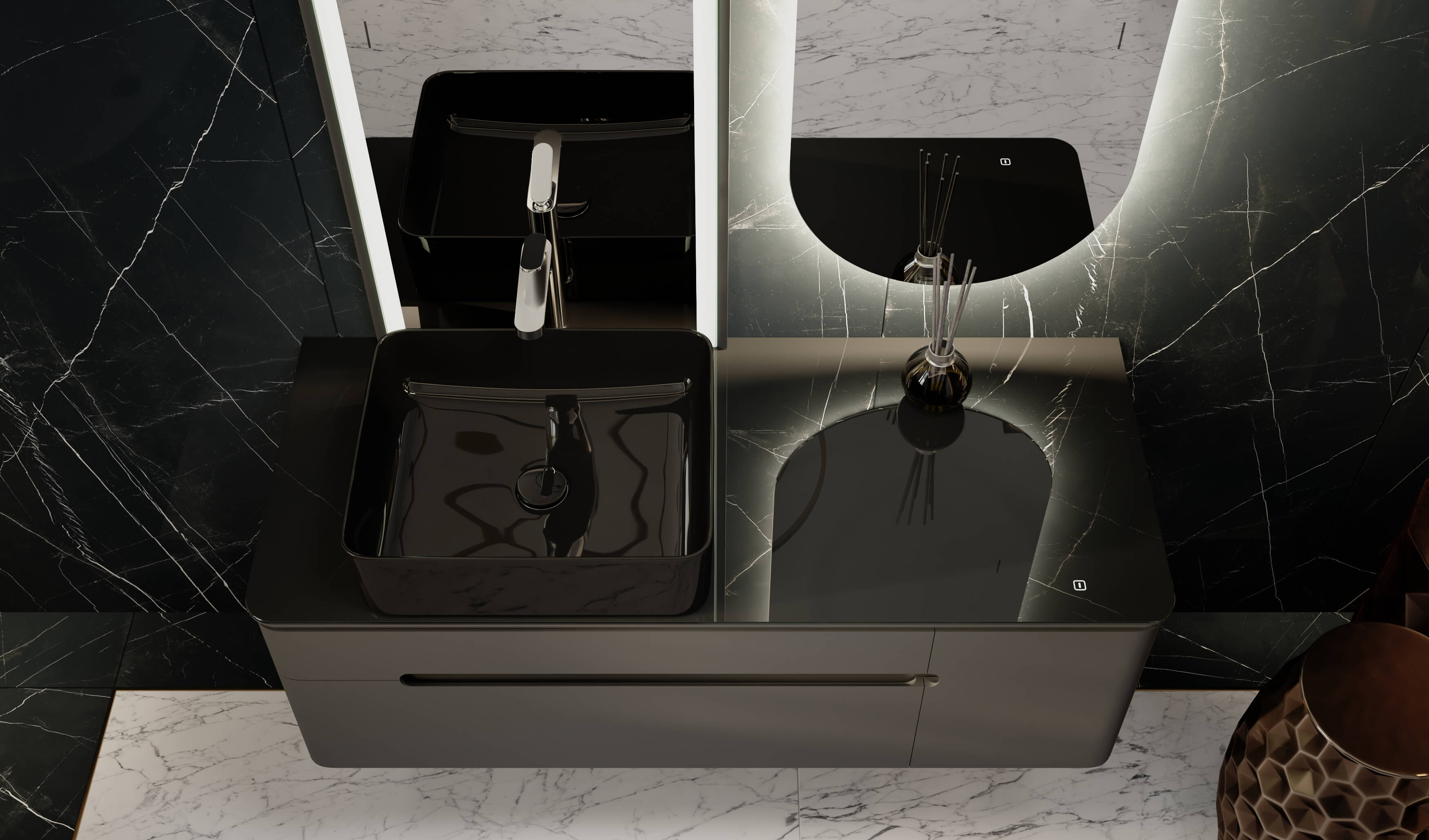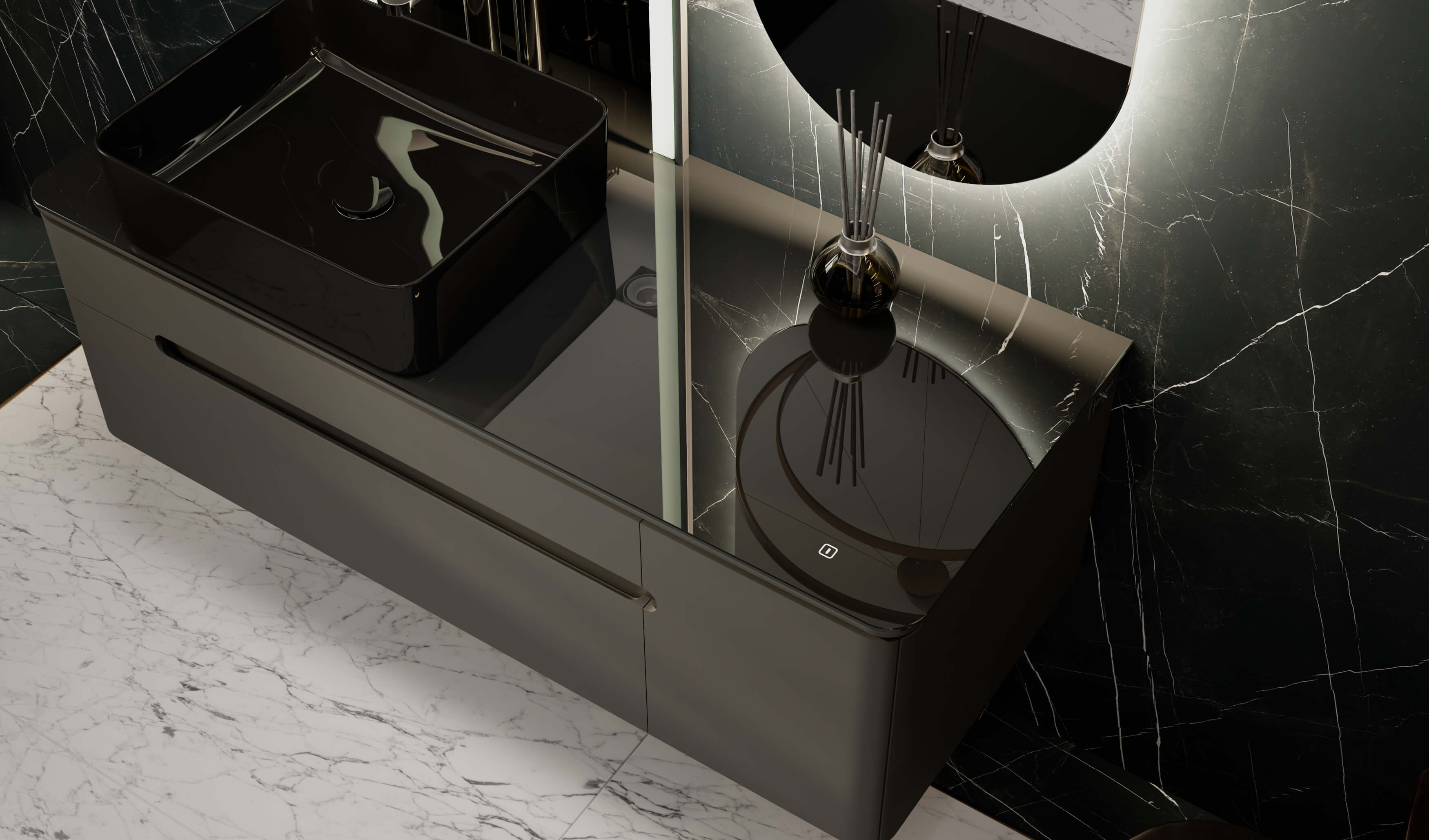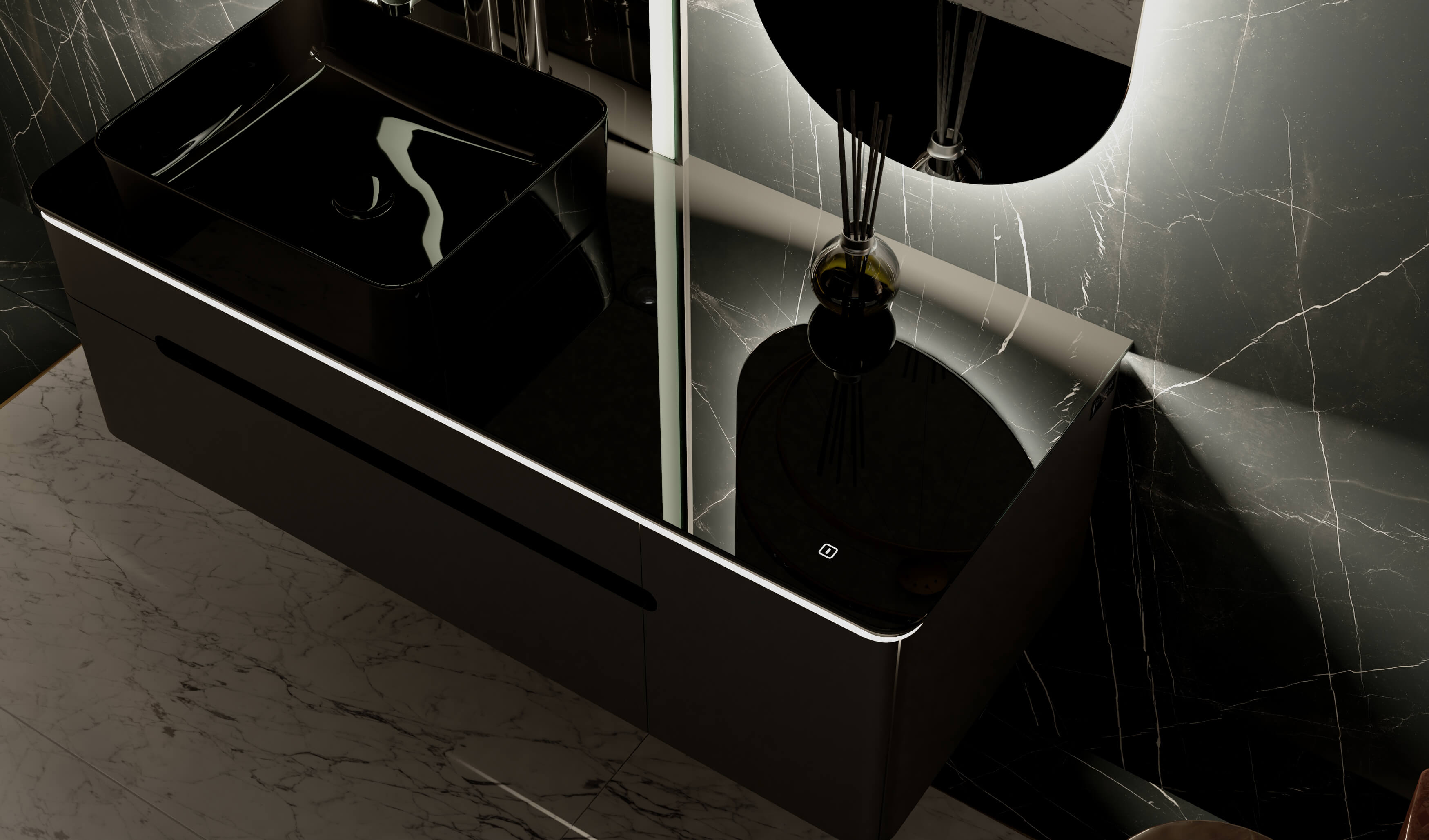 Тумба оснащена подсветкой столешницы и...сенсорным включателем.