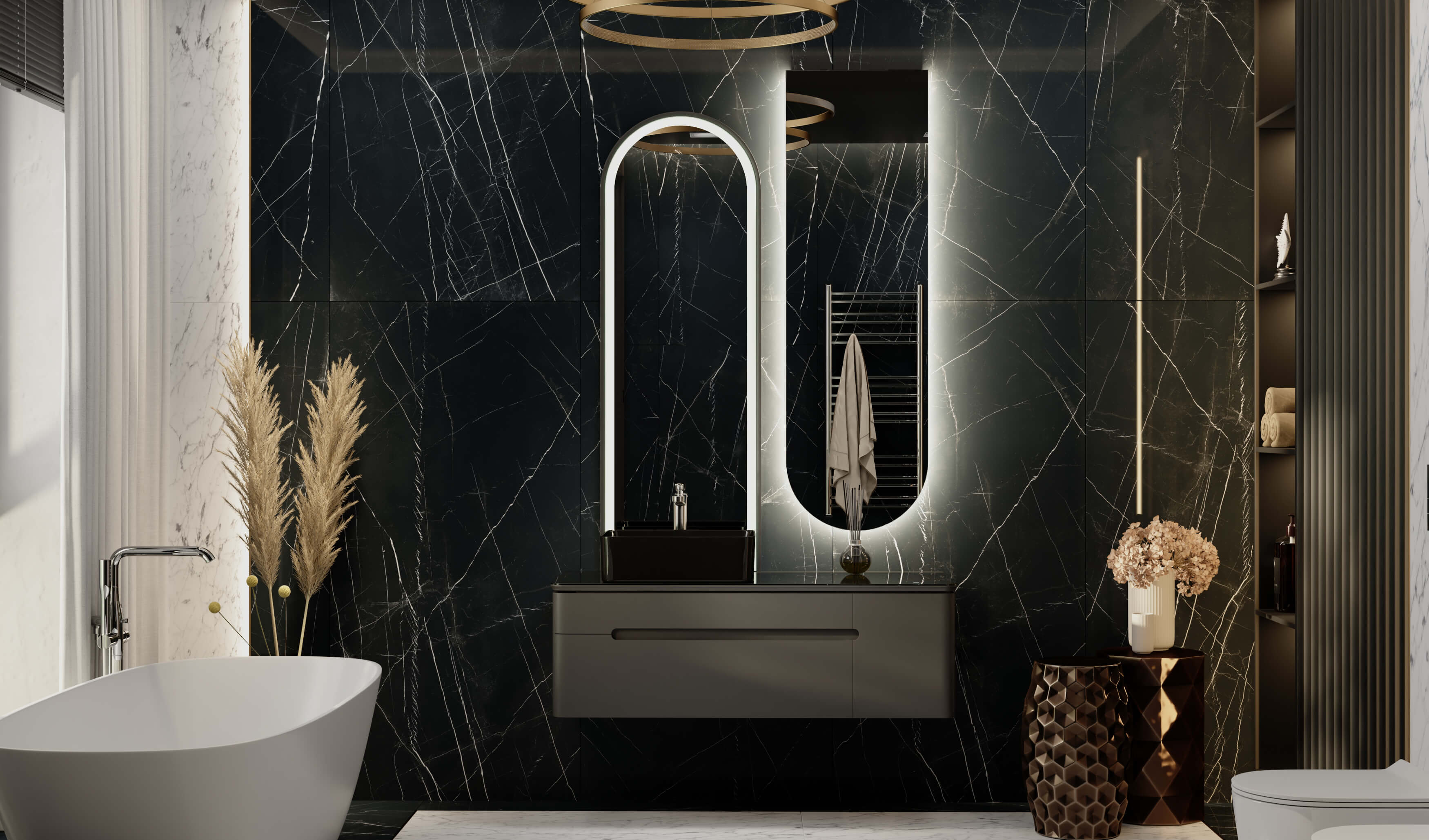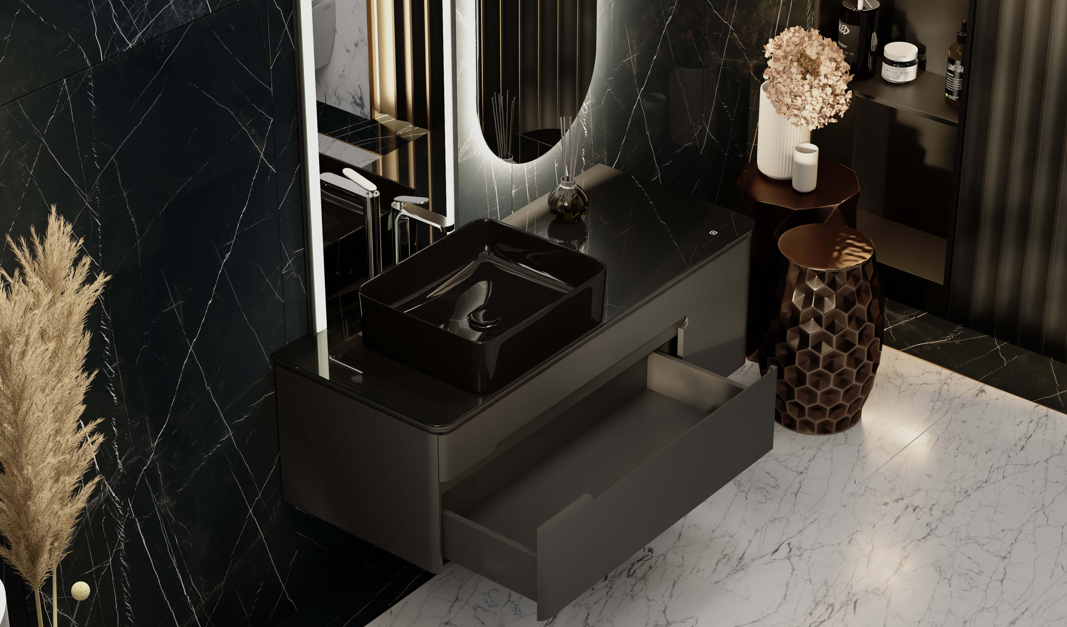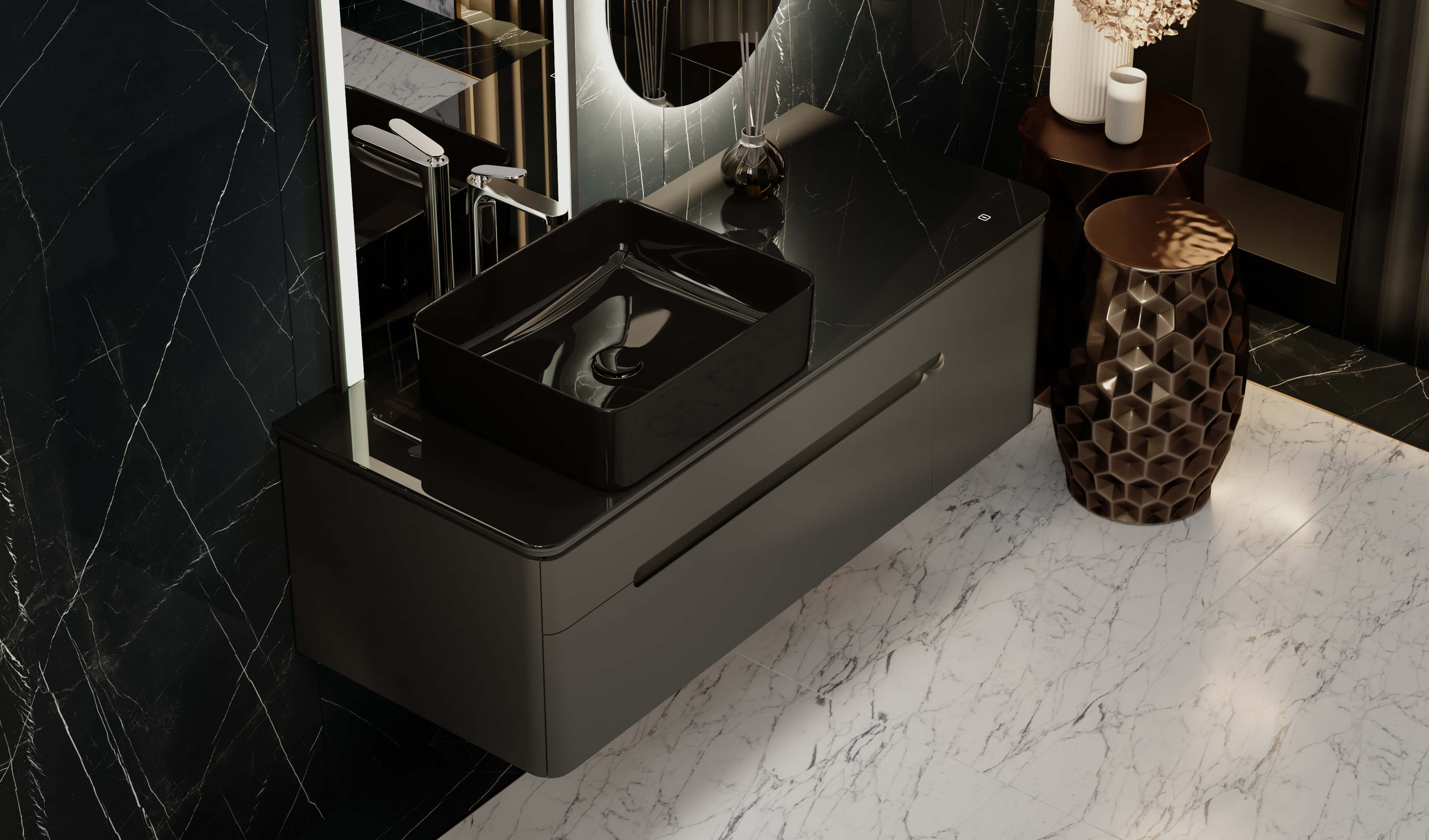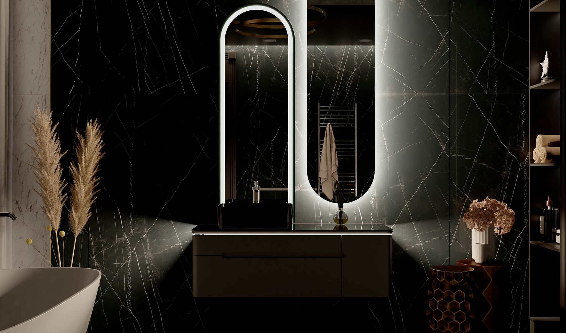 Подсветка Колизея и повторяющиеся арки подарили образ плавных линий, которые воплотились в коллекции Shine. Мягкость образа комплекта при лаконичности форм создает ощущение легкости. За счет этого он впишется практически в любой интерьер и привнесет в него шарм и чистоту.