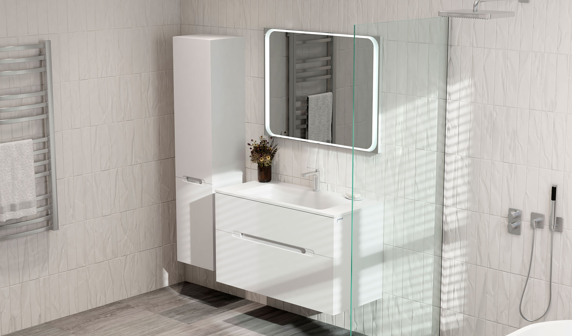 Оснащено подсветка по периметру с сенсорным включателем.