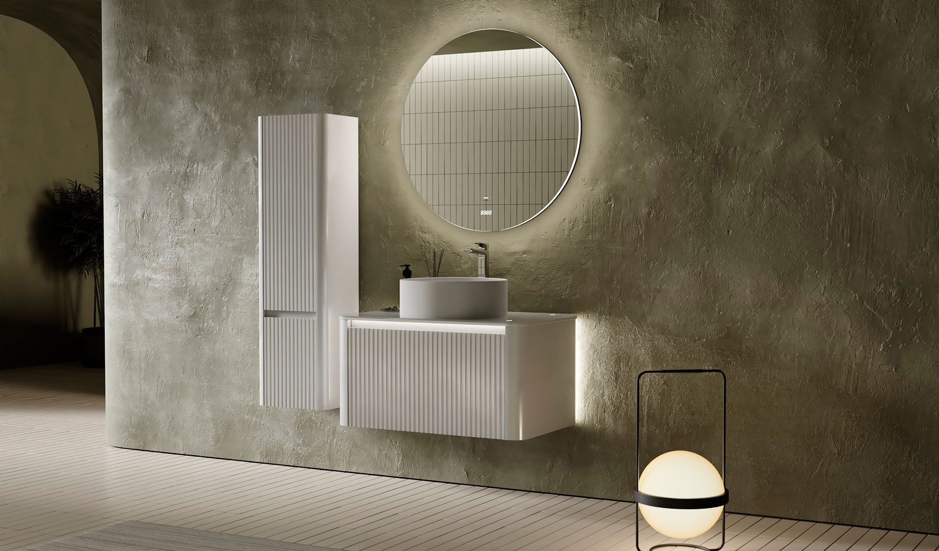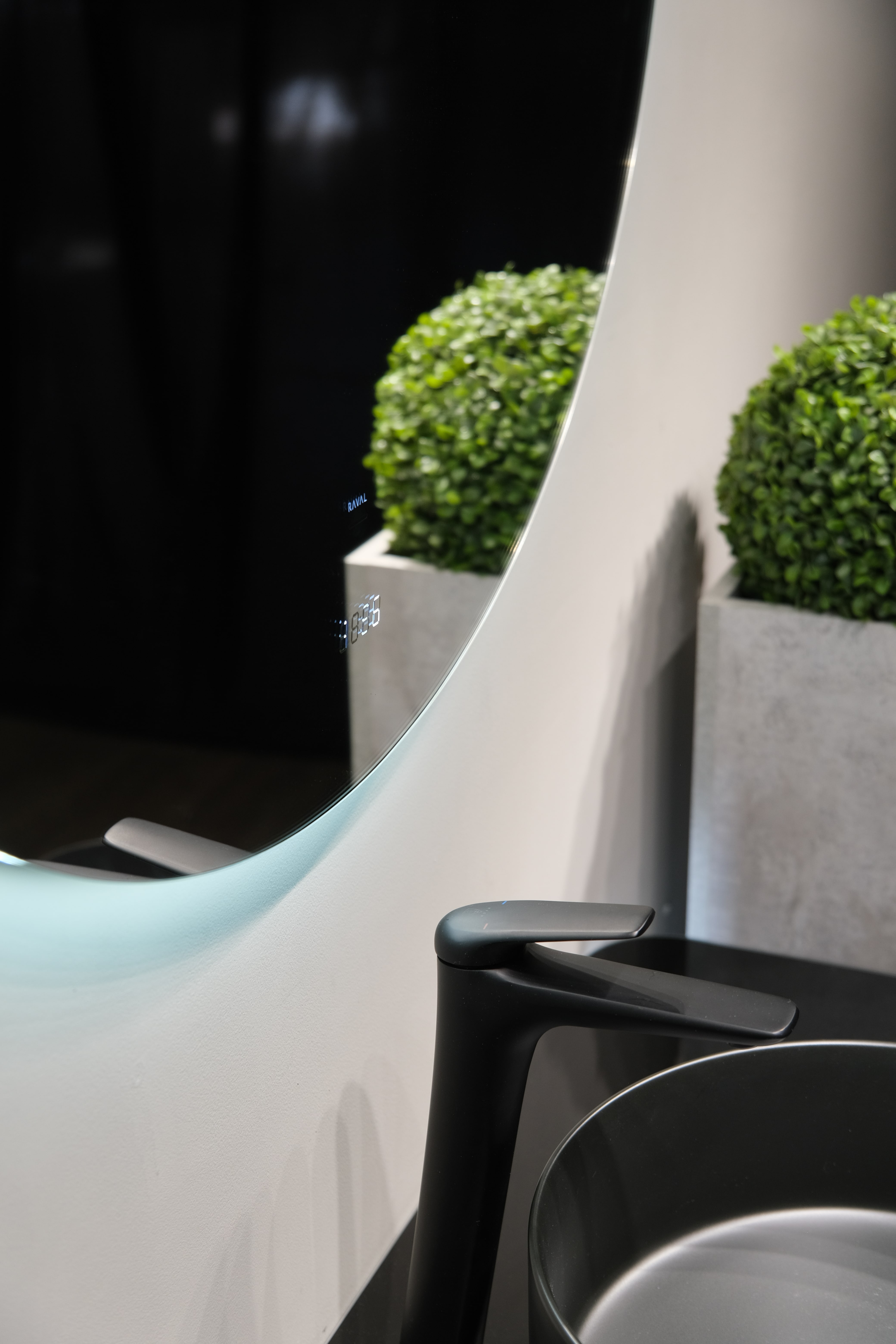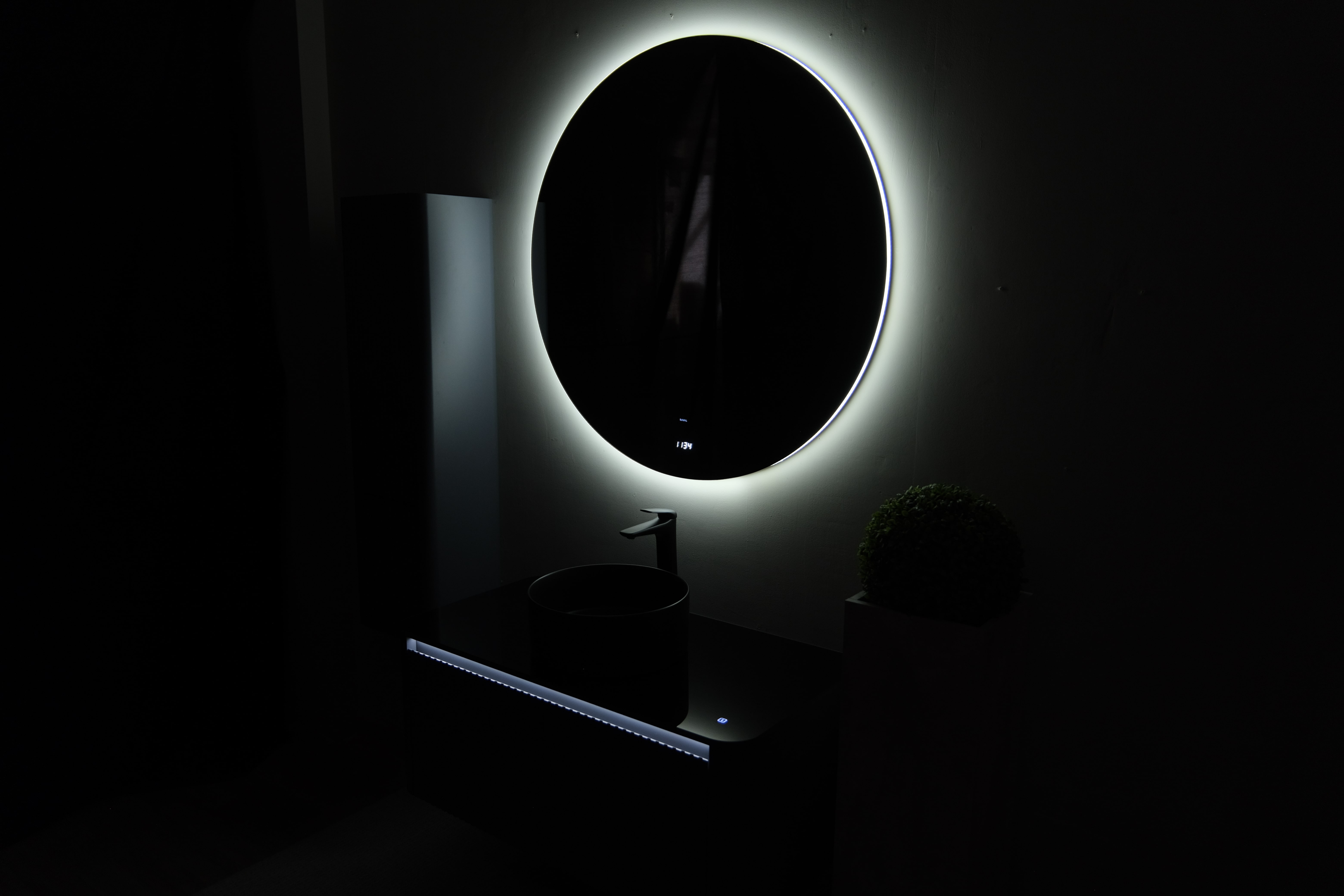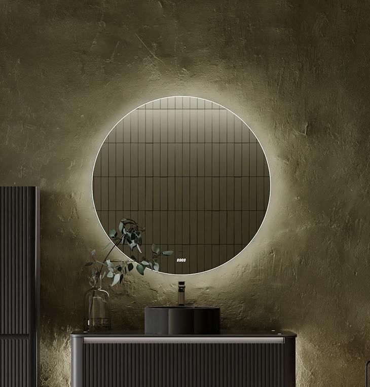 Зеркало с часами, интерьерной подсветкой и бесконтактным включением.