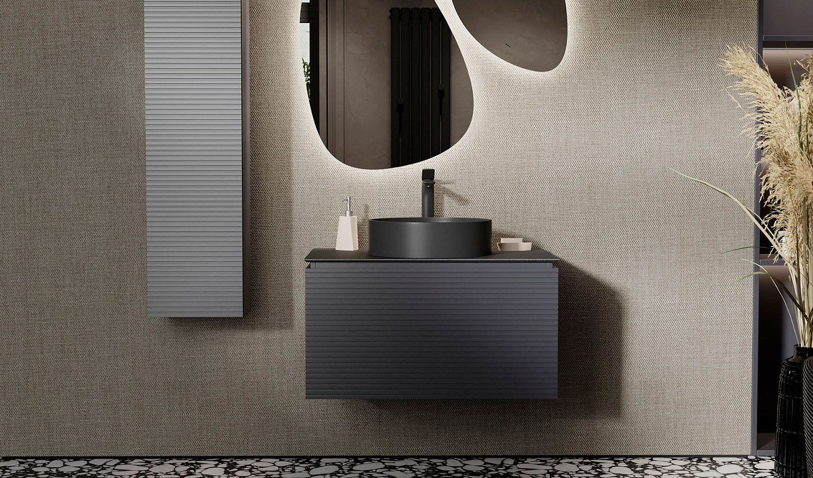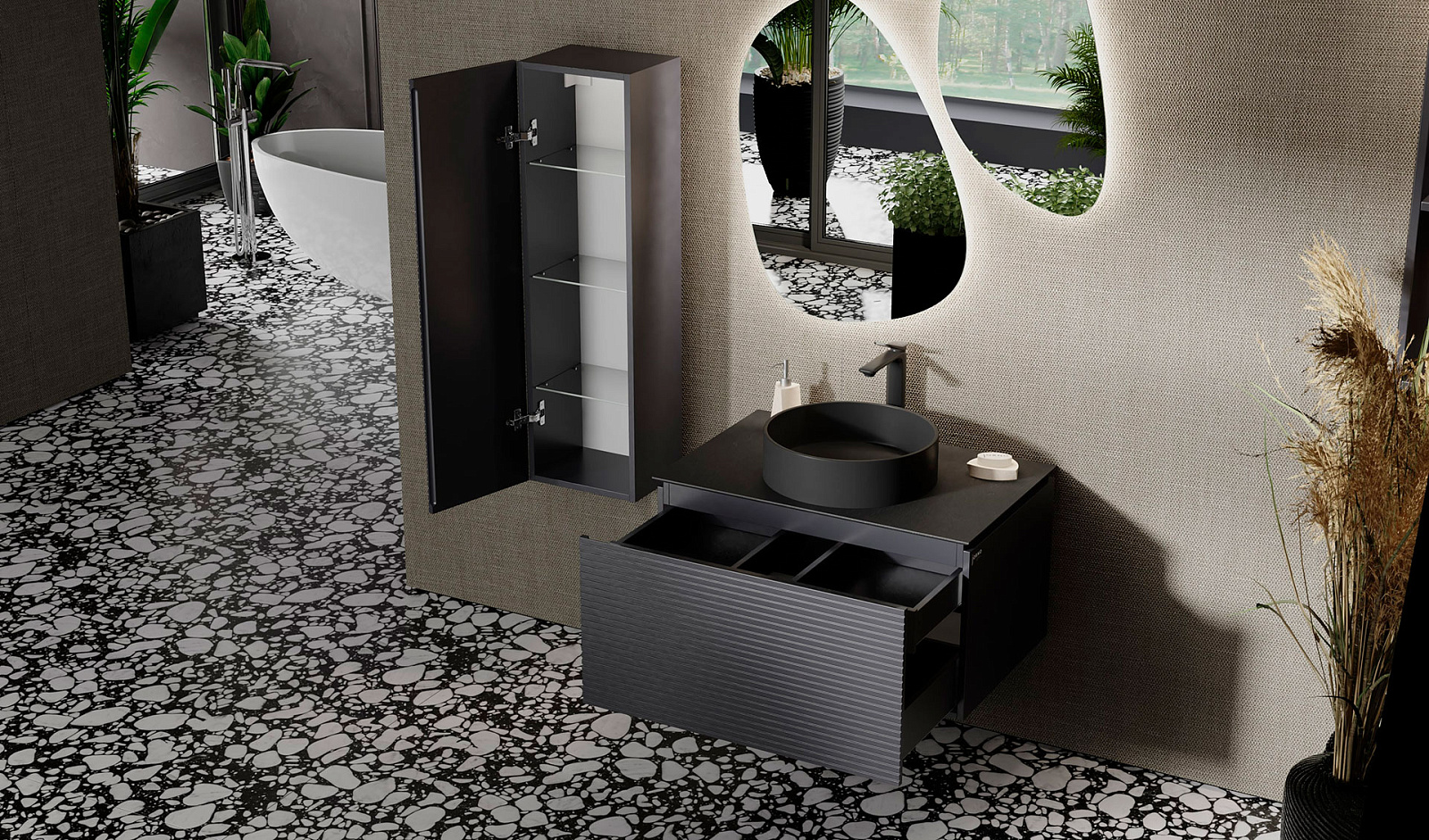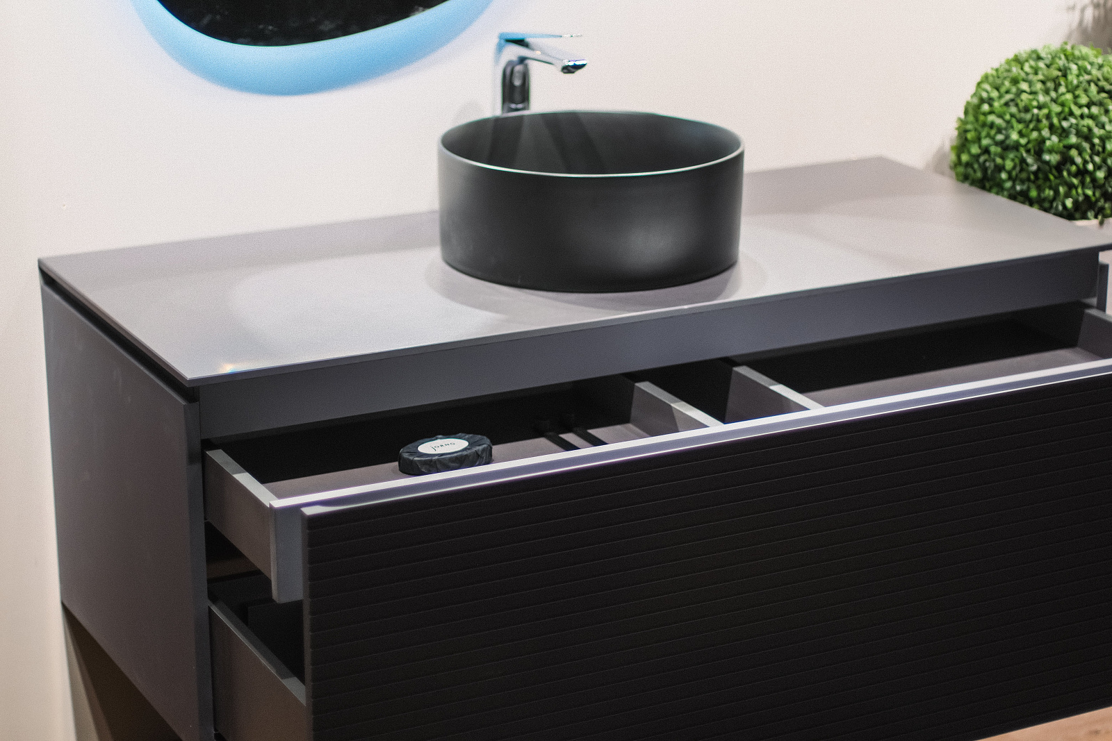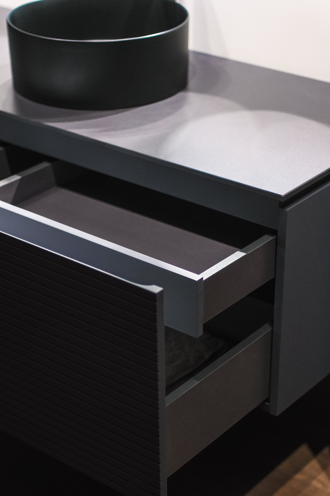 Тумба представлена в нескольких размерах: 80 и 100 см в белом цвете и 80, 100 и 120 см в цвете антрацит.